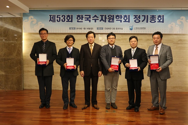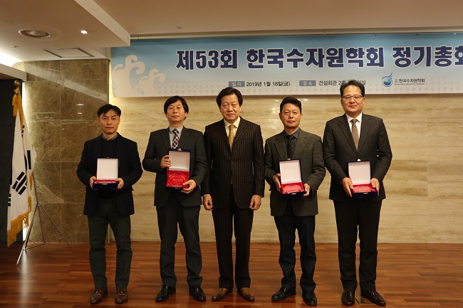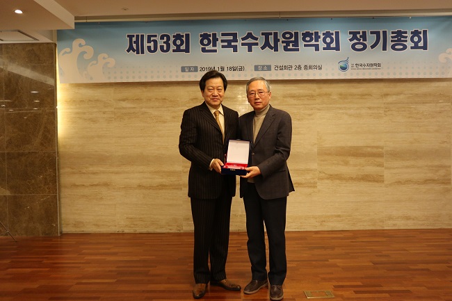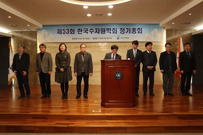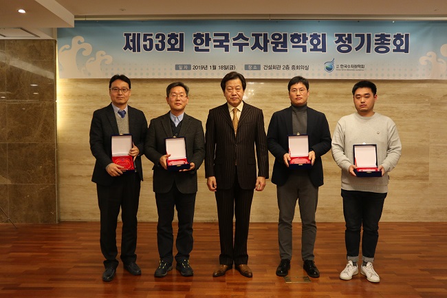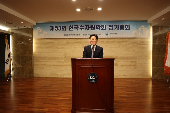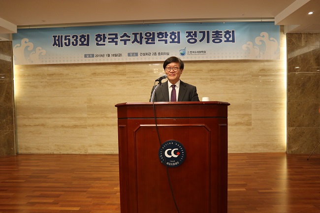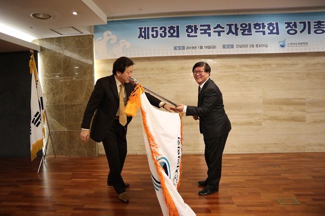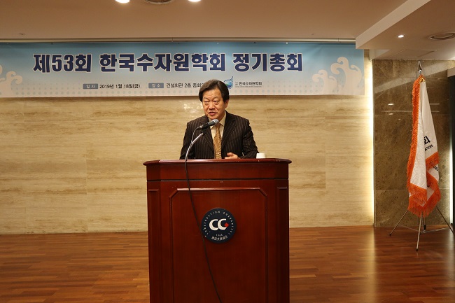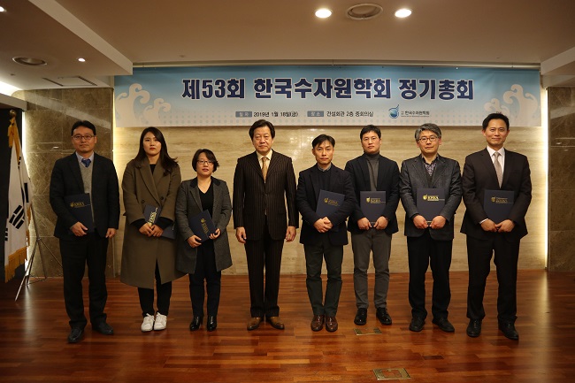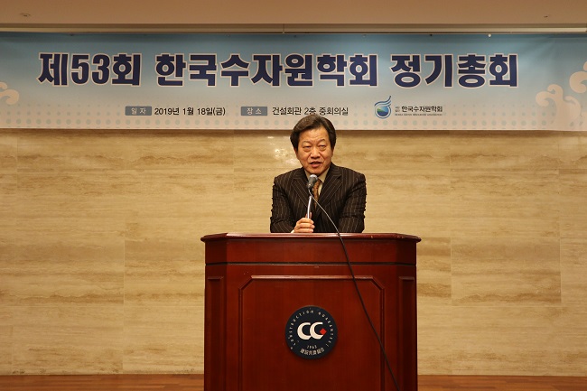 2019년 1월 18일 17시에 건설회관 2층 대회의실에서 제53회 정기총회를 개최하였습니다. 이번 정기총회에는 전경수 회장 외 210명(위임 90명 포함)이 참석하였습니다. 이날 총회 1부 시상식에서는 학회상, 수자원특별상, 학회장표창, 특별공로패에 대한 시상을 하였고, 안건은 2018년 사업실적 및 결산보고, 회장 이취임식으로 진행되었습니다. 2부에서는 2019년 사업계획 및 예산(안) 심의 등으로 진행하고 신임 회장단, 이사 등 소개가 있었습니다.