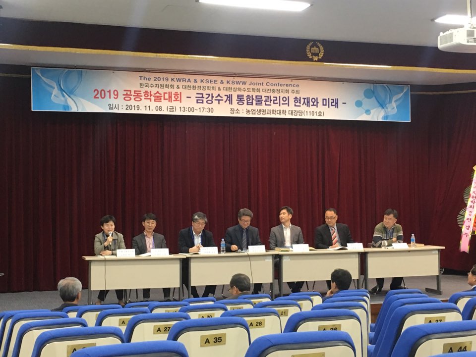 한국수자원학회 대전충청지회는 2019년 11월 8일(금) 충남대학교에서 「금강수계 통합물관리의 현재와 미래」라는 주제로 대한환경공학회 대전충청지회 그리고 대한상하수도학회 대전(세종)충청지회와 함께 공동학술대회를 개최하였습니다. 100여명이 참석한 이번 공동학술대회에서는 아래와 같은 내용으로 진행되었습니다.