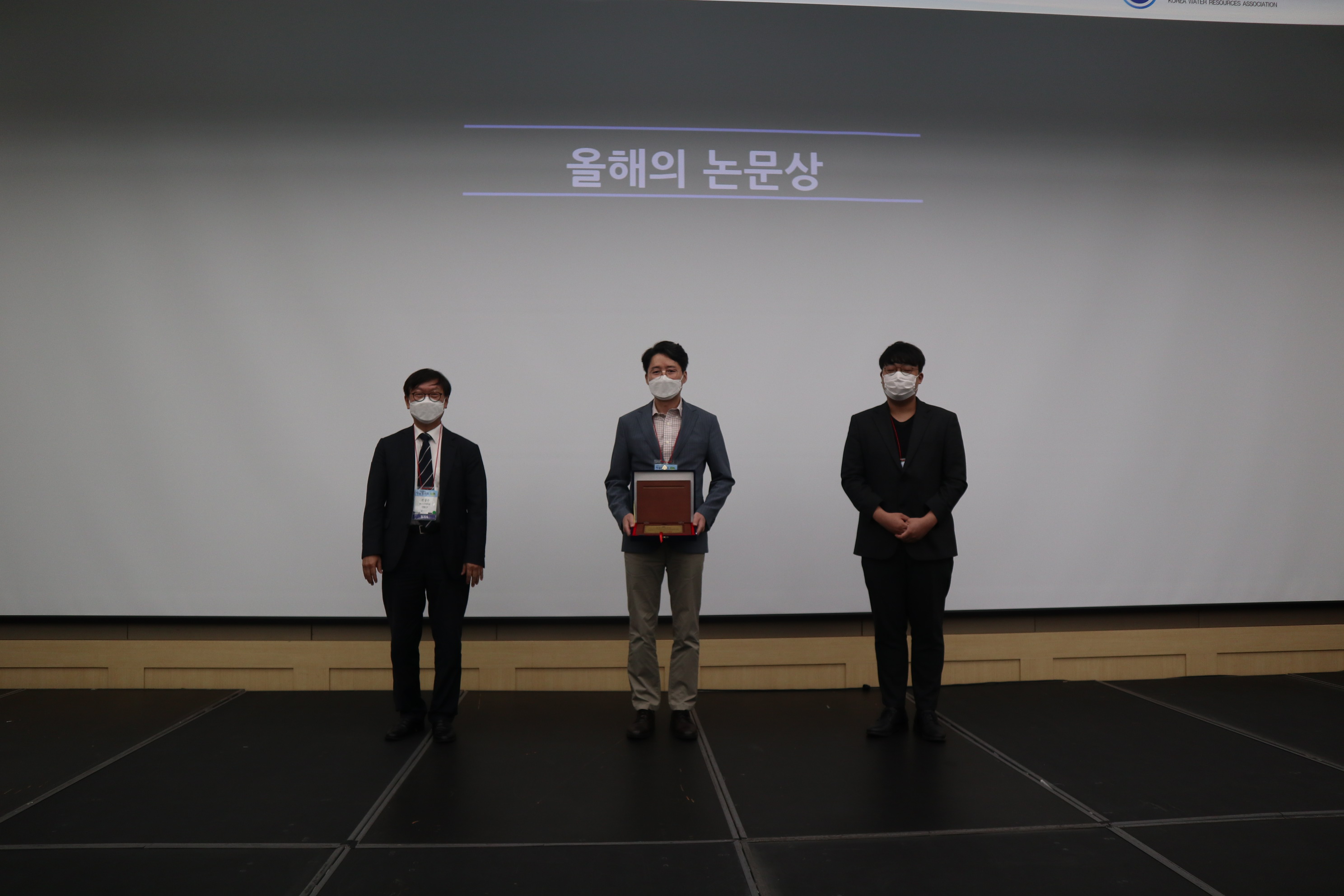 - 올해의 논문상 시상_백중철 교수(강릉원주대학교), 김병주 학생(강릉원주대학교) 논문제목 : "사각형 수로에서 중력류의 다상흐름 수치모의"