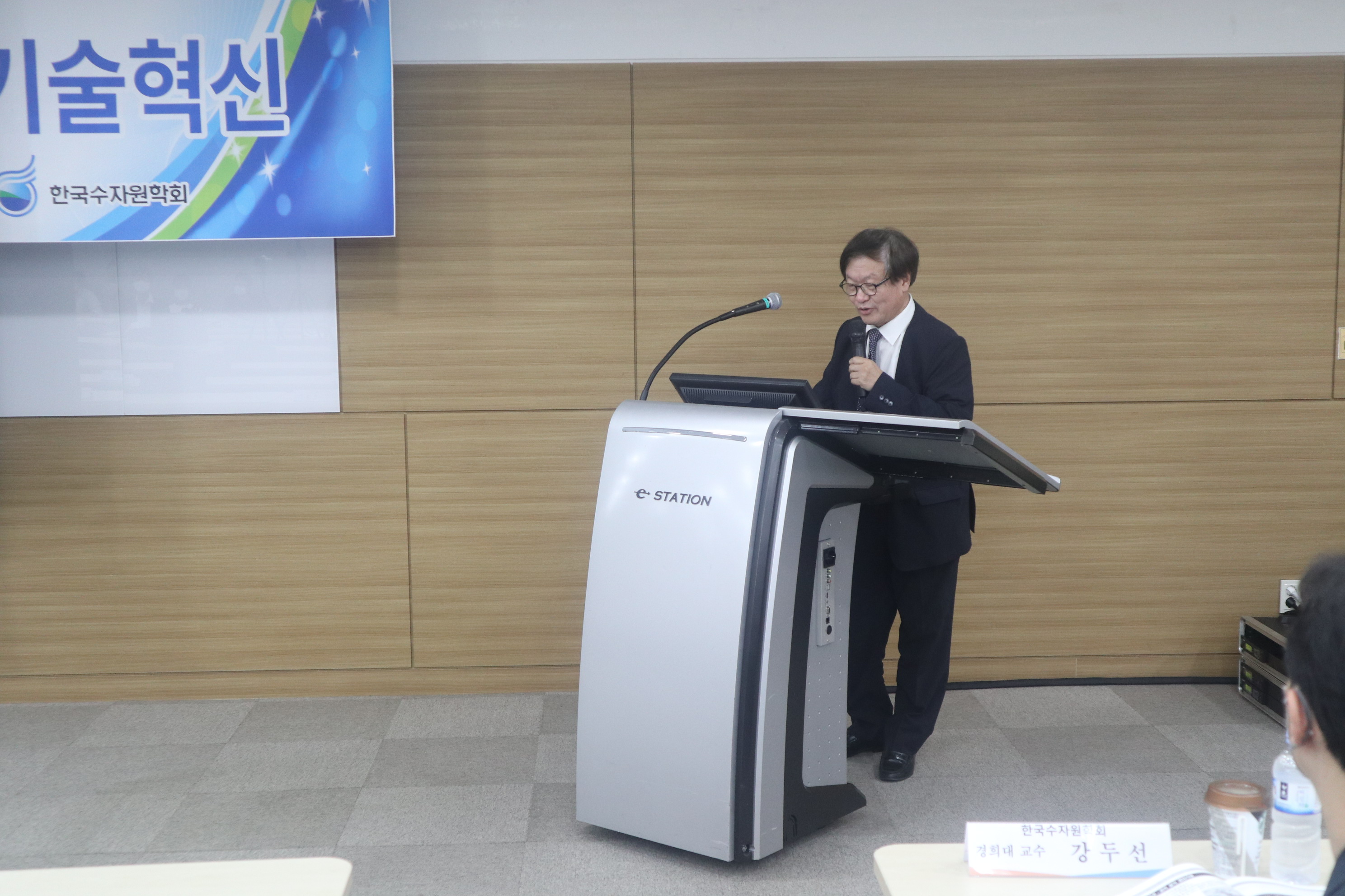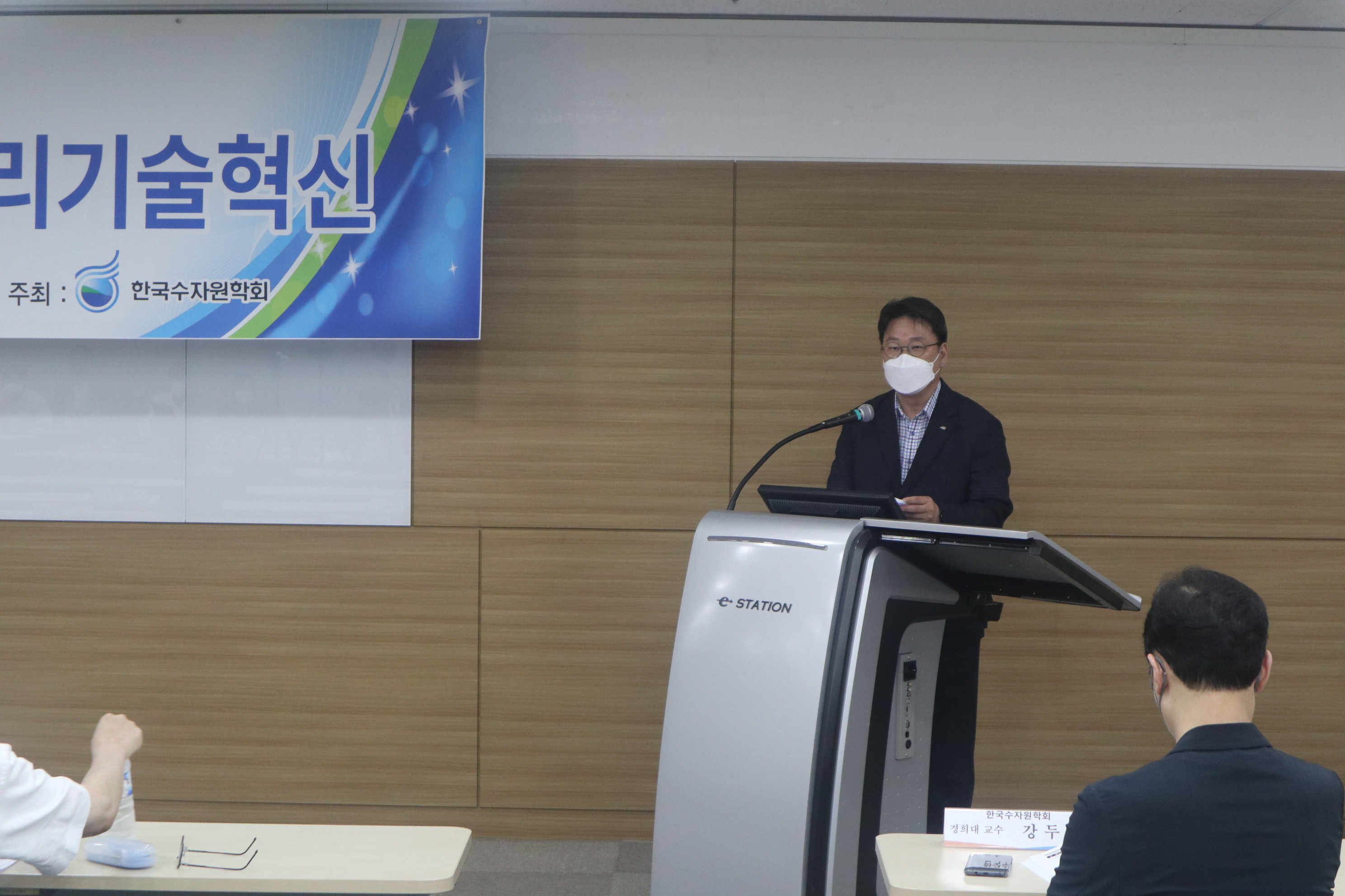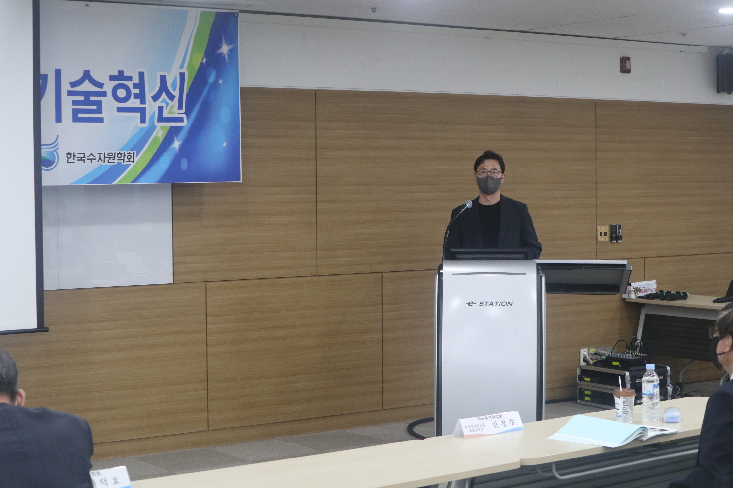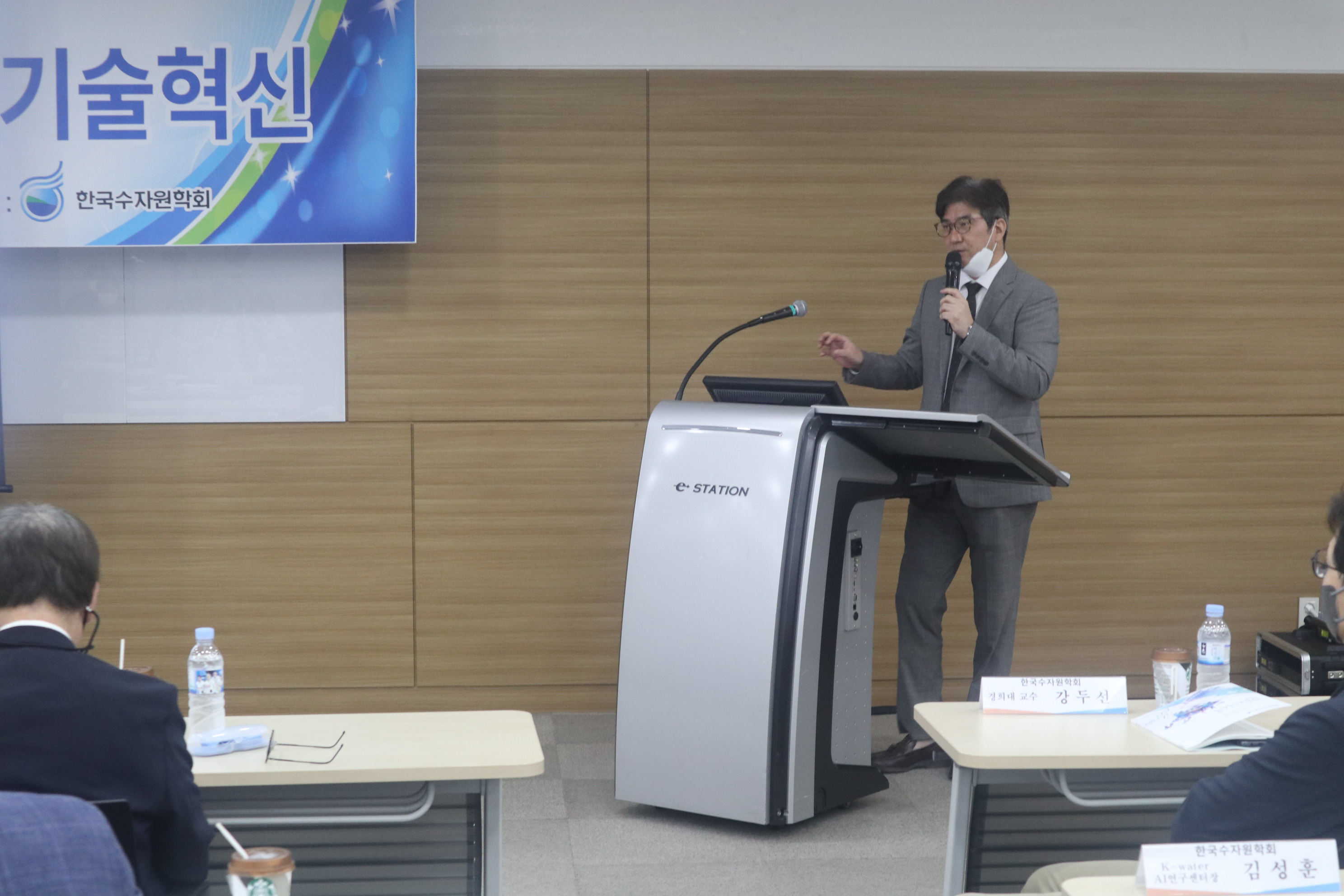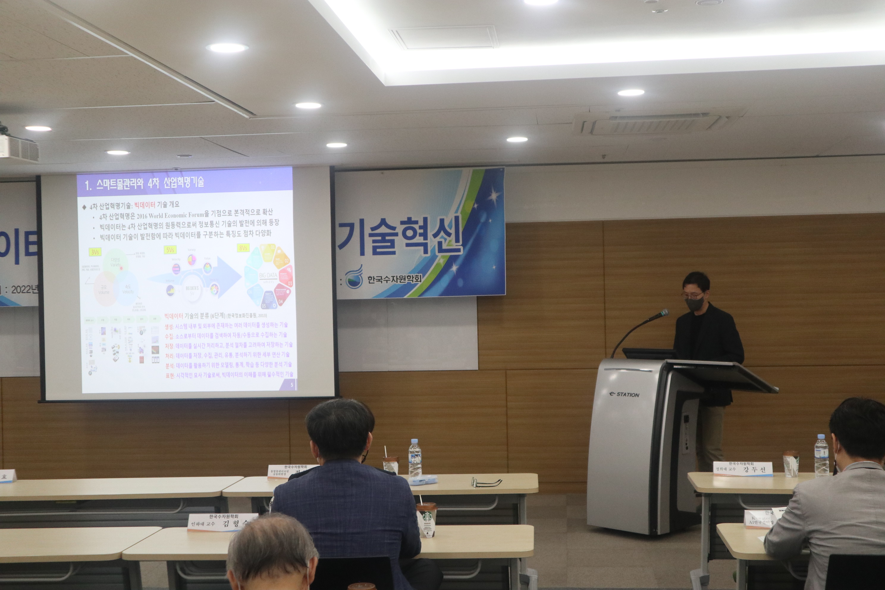 · 일시 : 2022년 06월 24일(금) 13:00 · 장소 : 양재 aT센터 4층 창조룸Ⅰ(온라인 병행) · 참석 : 배덕효 회장 외 90여명(온라인 참가자 포함) · 주제발표 : 빅데이터·AI를 활용한 물관리기술혁신 - 기계학습 모형을 이용한 홍수예측 / 전경수 성균관대학교 교수 - 안정적 용수공급을 위한 빅데이터·AI 활용기술 / 이정주 K-water 수석위원 - 빅데이터, 지능화 기술을 활용한 상수도 운영 및 관리기술 / 강두선 경희대학교 교수 - 빅데이터·AI를 활용한 하천환경/수질관리 기술 / 김준하 광주과학기술원 교수 · 지정토론 및 일반토론 - 좌장: 김형수(인하대학교 교수) - 패널: 박상근(환경부 수자원관리과), 차준호(한강홍수통제소 예보통제과장), 황석환(한국건설기술연구원 연구위원), 김성훈(K-water AI연구센터장)