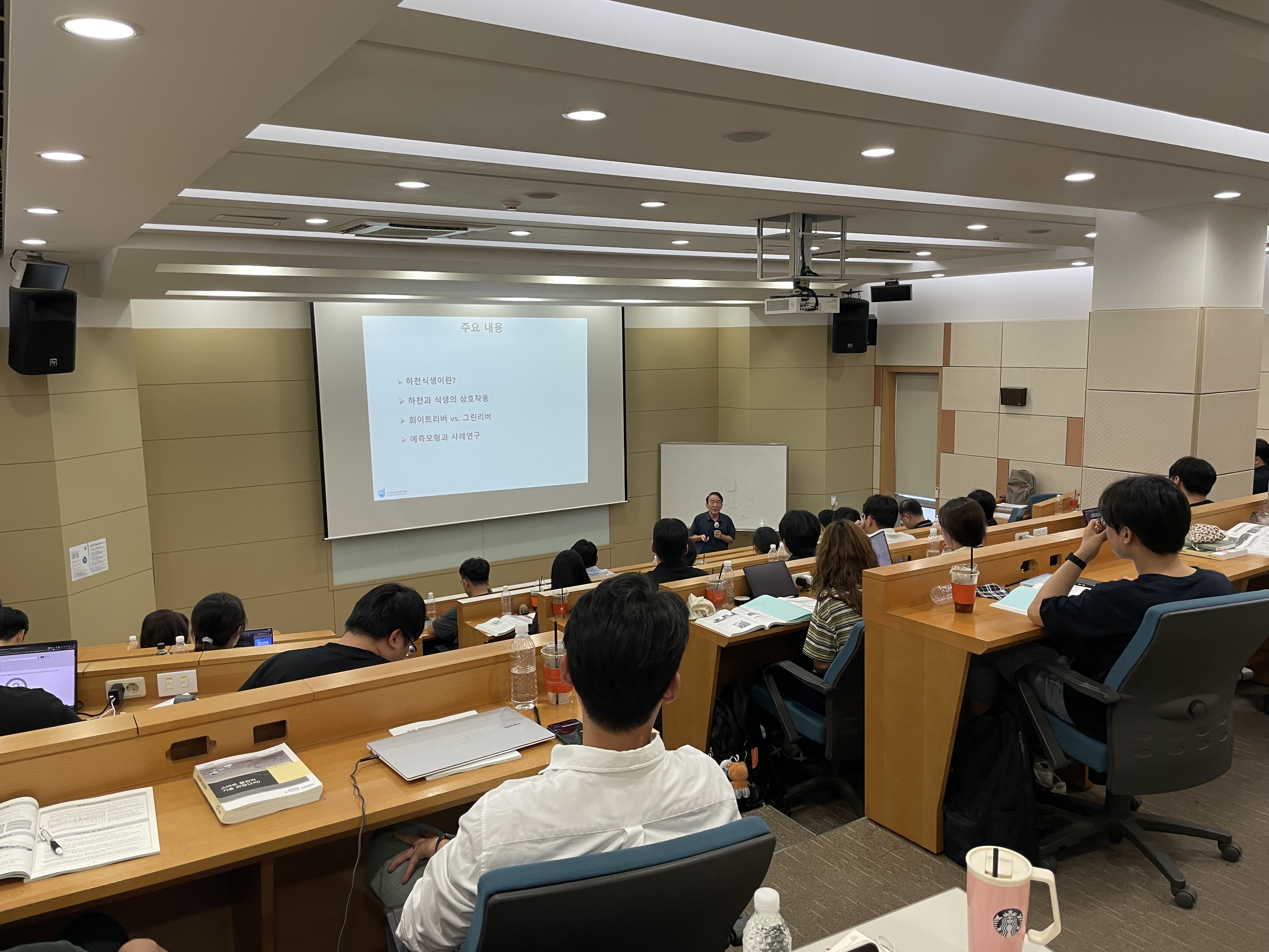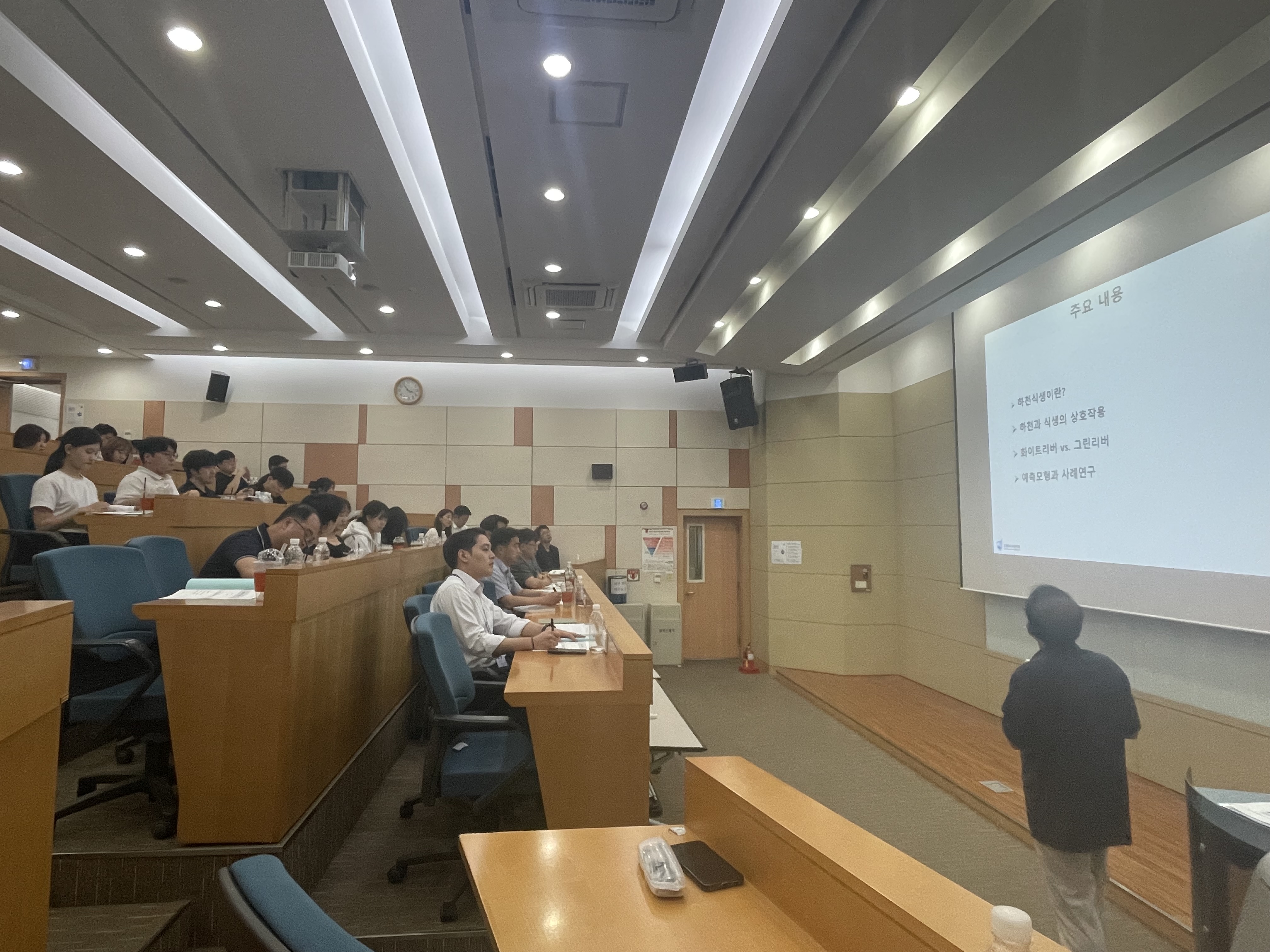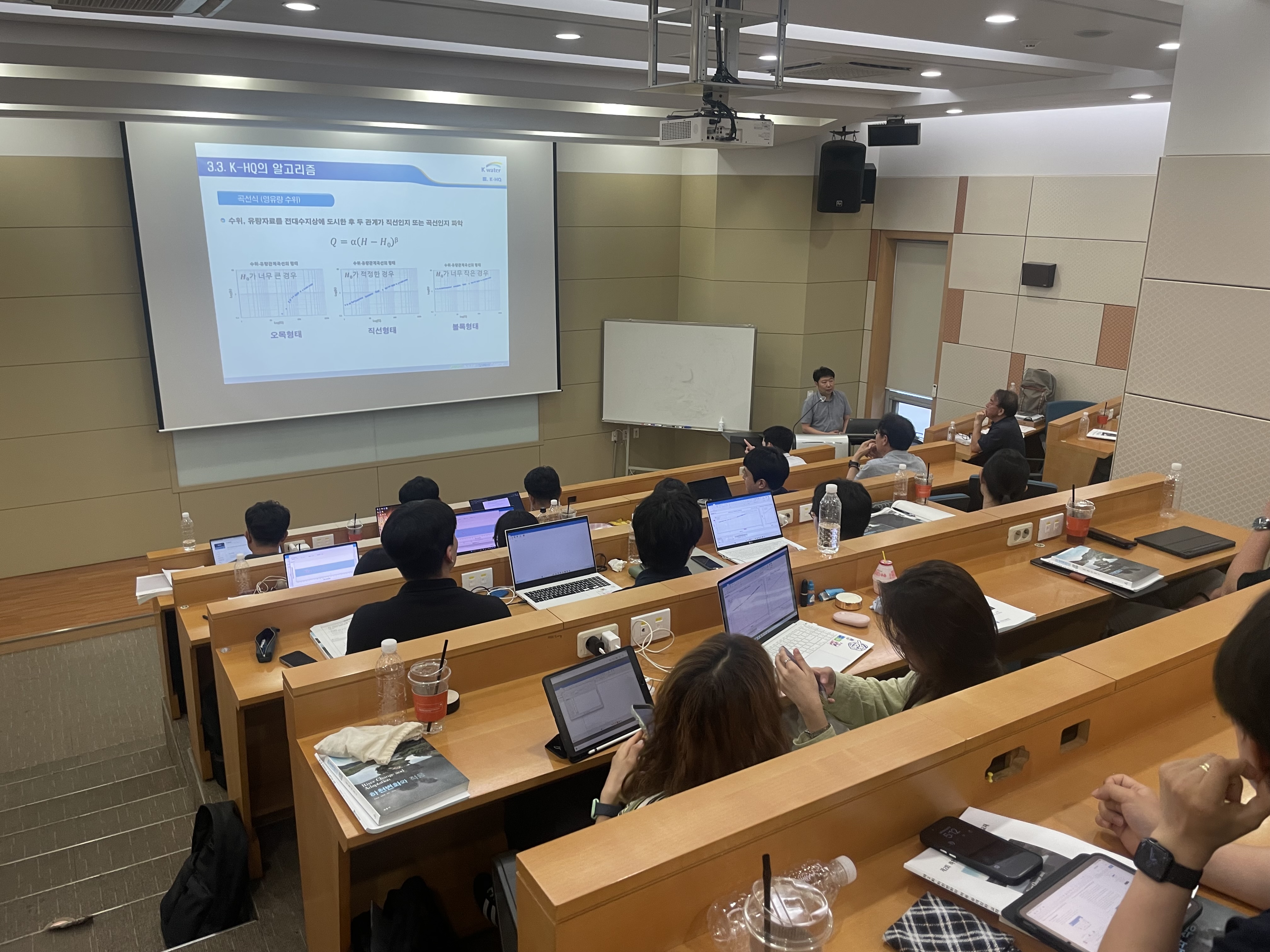 · 일시: 2025년 6월 30일(월) 09:45 · 장소: K-water 연구원 40주년 기념홀 1층 한강실 · 참석: 42명 · 내용: - 기후변화와 하천(김진관 교수) - 하천지형의 이해, 하천의 종적변화(지운 박사) - 댐 상류 하천변화, 식생하천의 흐름저항(지운 박사) - 댐 하류 하천변화, 하천의 평면변화, 하천교란과 적응관리(장창래 교수) - 식생과 하천변화(우효섭 교수) - K-HQ(수위-유량 관계 곡선식 작성 툴) 교육 및 실습(김연수 박사)