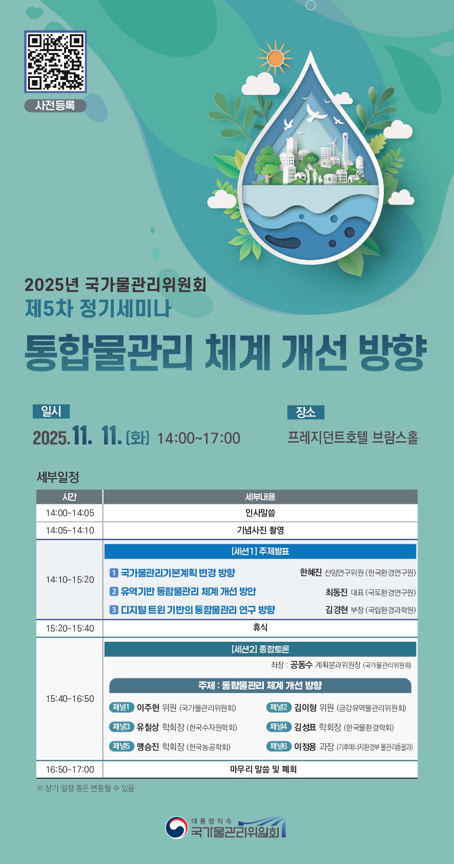 [외부행사] 2025년 국가물관리위원회 제5차 정기세미나 개최 안내